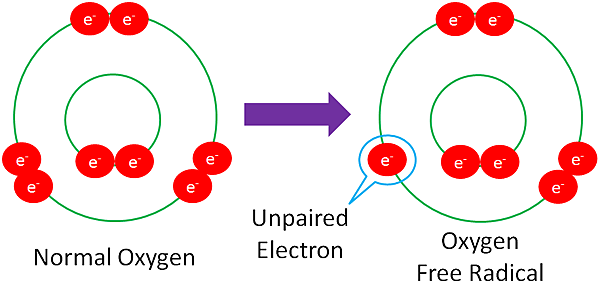 氧分子在化學反應中失去電子,變得不穩定,形成自由基